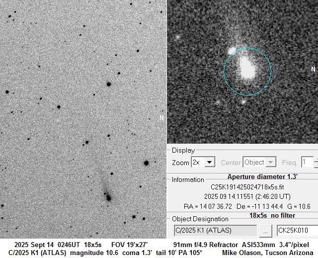 Observation by Mike Olason: C/2025 K1, observed by Mike Olason