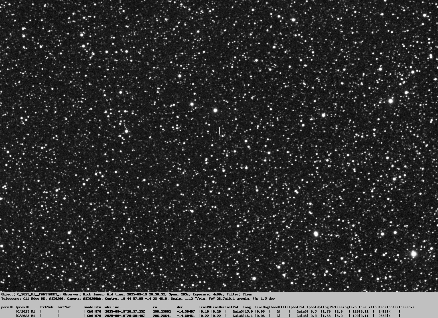Observation by Nick James: C/2023 R1 (PANSTARRS), observed by Nick ...