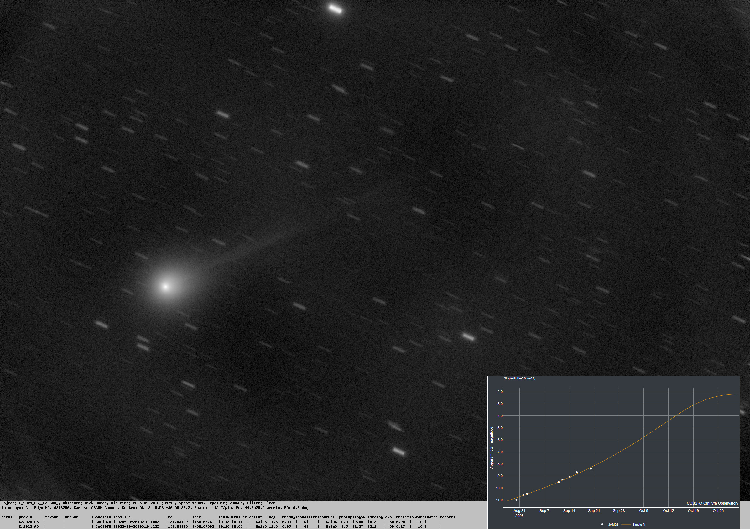 Observation by Nick James: C/2025 A6 (Lemmon)