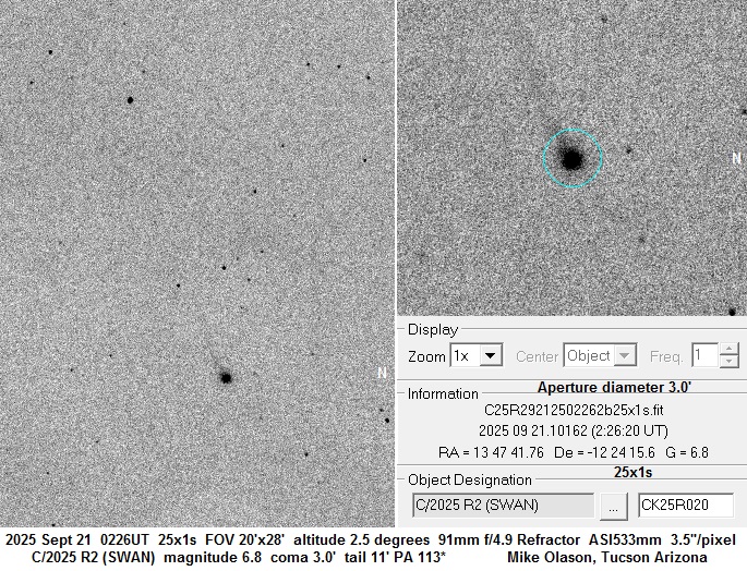 Observation by Mike Olason: C/2025 R2, observed by Mike Olason