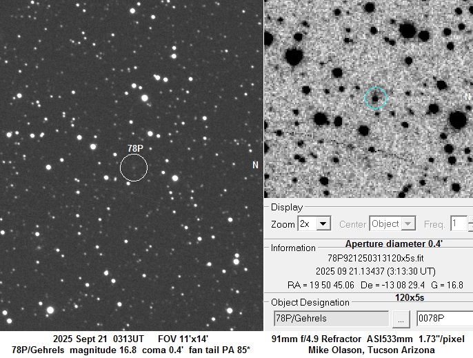 Observation by Mike Olason: 78P Gehrels, observed by Mike Olason