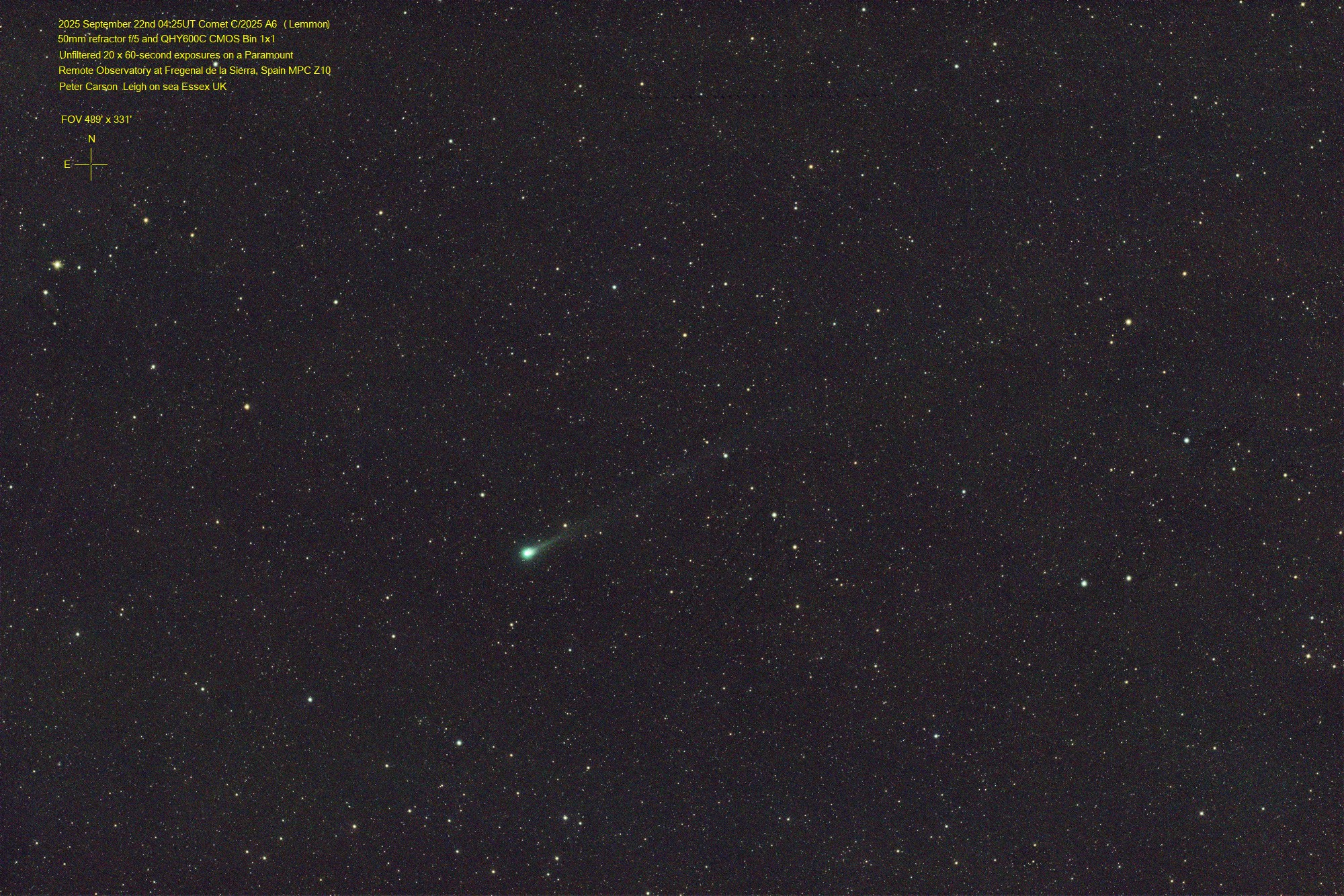 Observation by Peter Carson: C/2025 A6, observed by Peter Carson