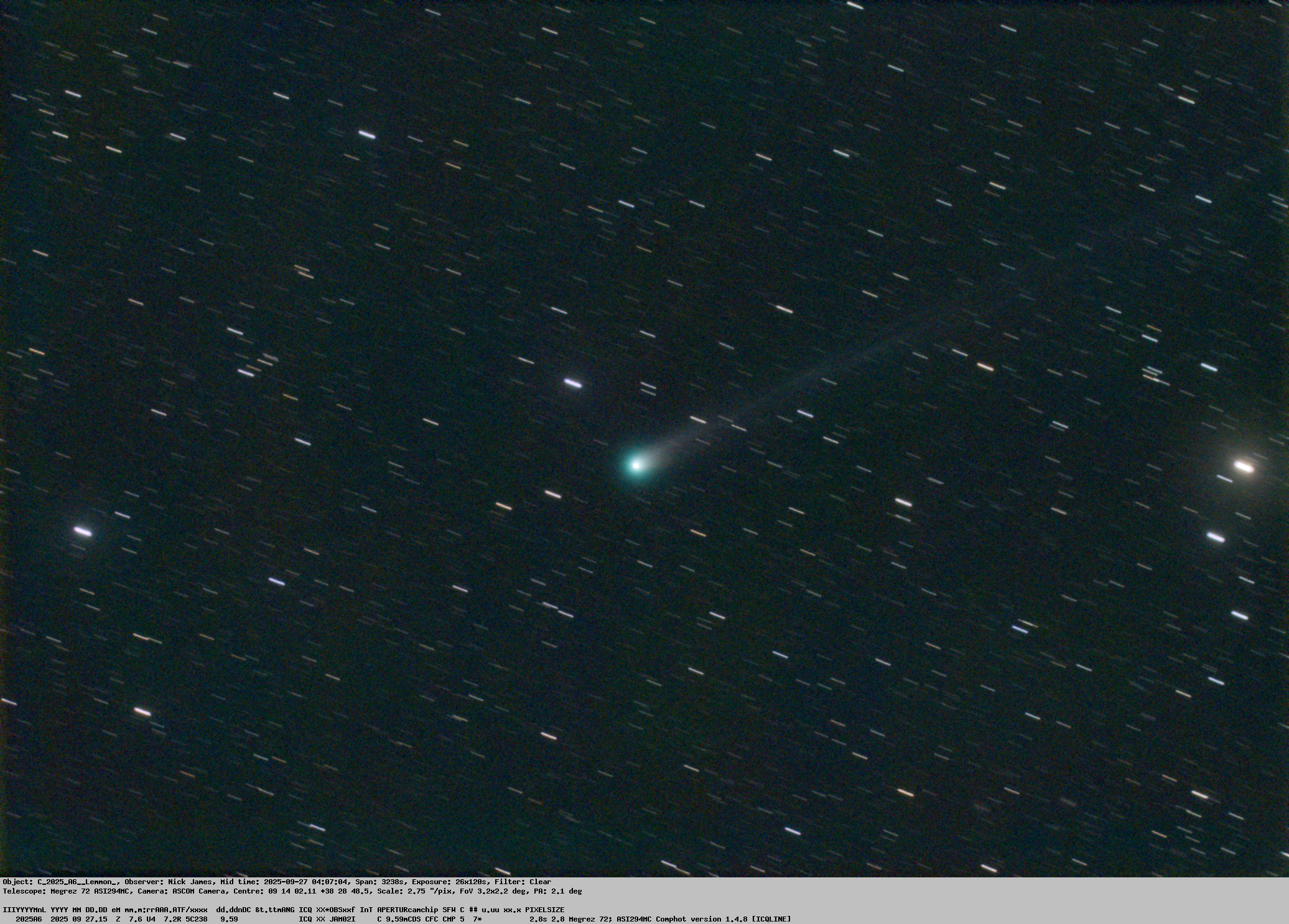 Observation by Nick James: C/2025 A6 (Lemmon) wide field