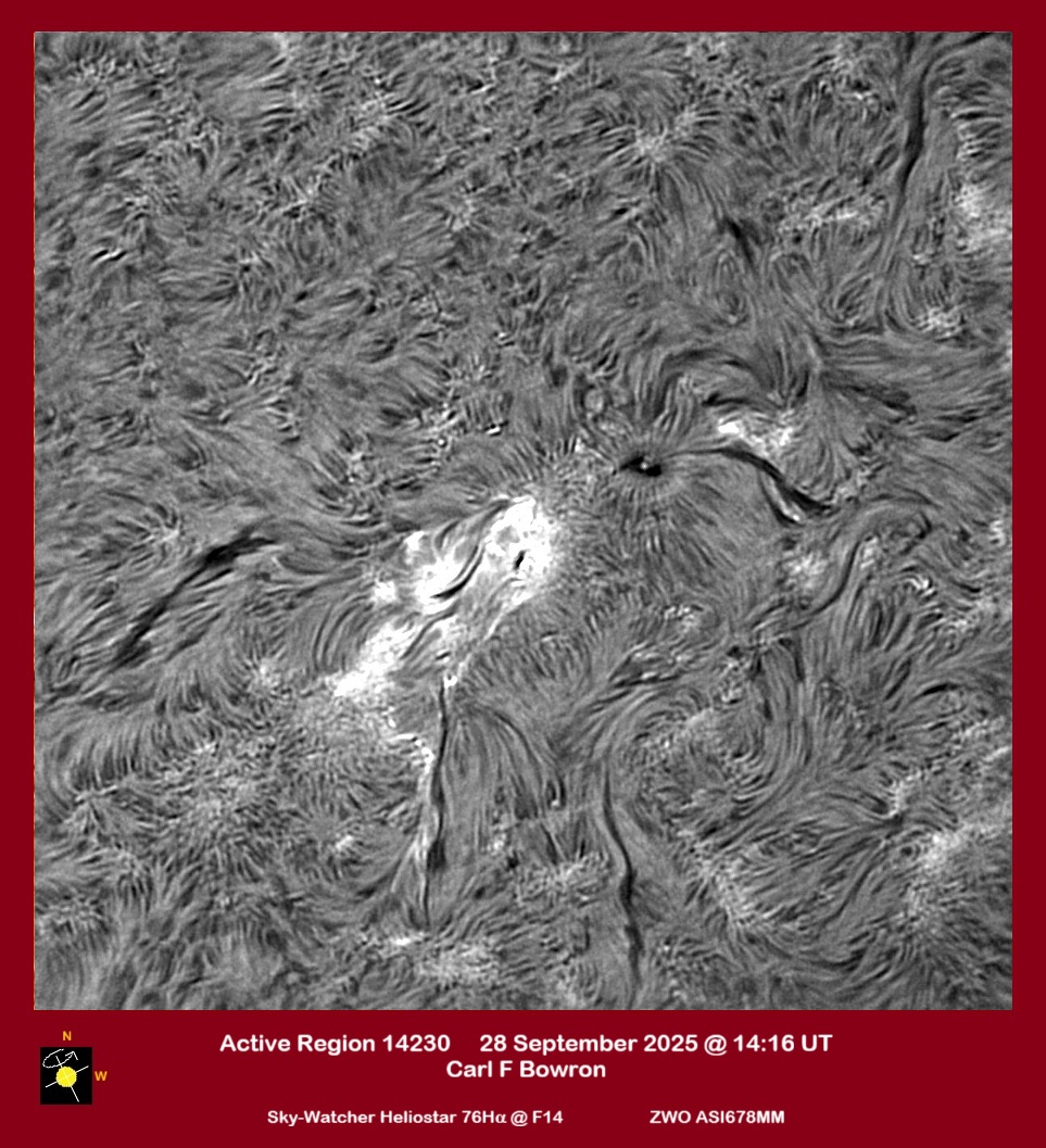 Observation by Carl Bowron: SUN 20250928 1416UT AR14230 HALPHA bw CF...