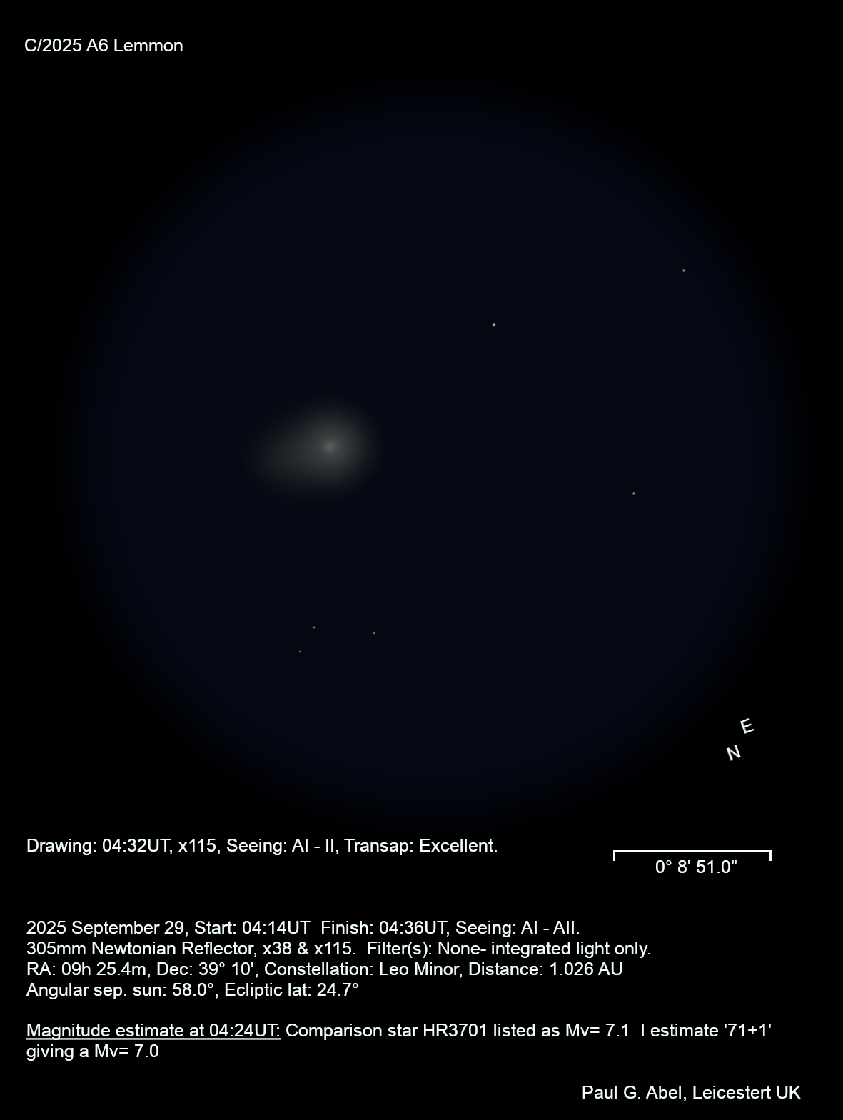 Observation by Paul G. Abel: C/2025 A6 Lemmon