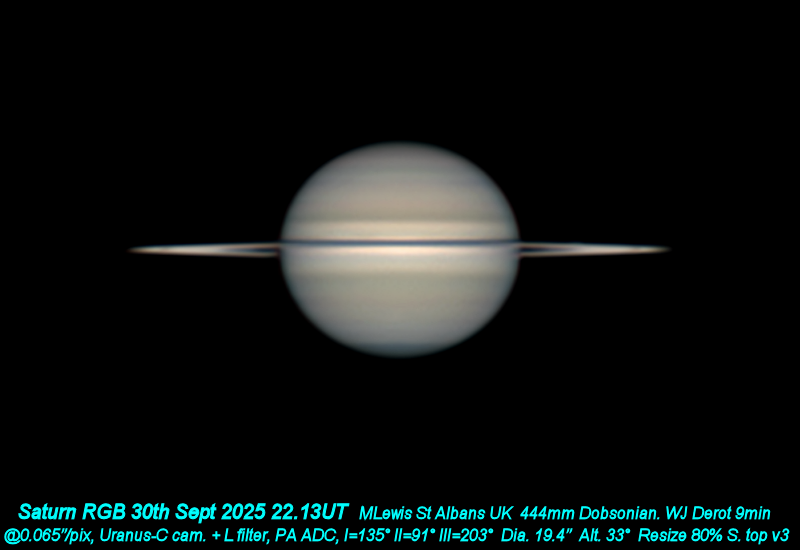 Observation by Martin Lewis: Saturn 30th Sept. 2025