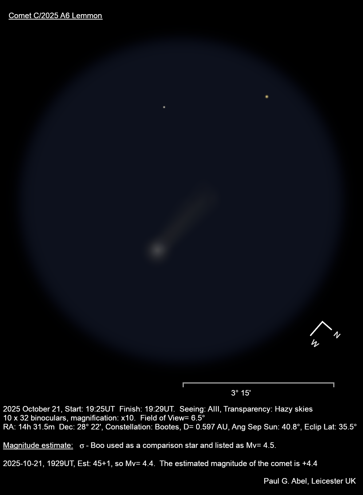 Observation by Paul Abel: C/2025 A6, observed by Paul Abel