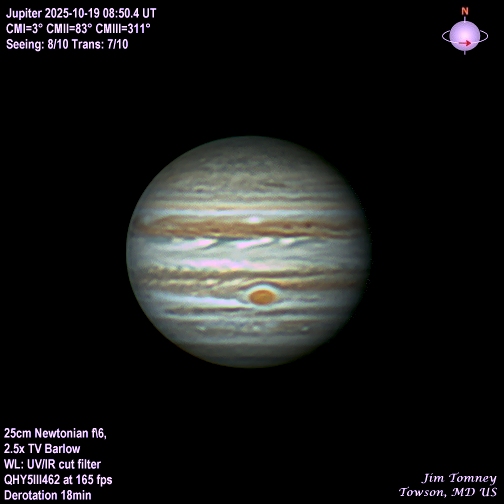 Observation by Jim Tomney: Jupiter 2025-10-19 08:50 WL