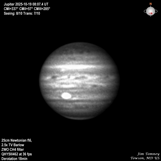 Observation by Jim Tomney: Jupiter 2025-10-19 08:07 CH4