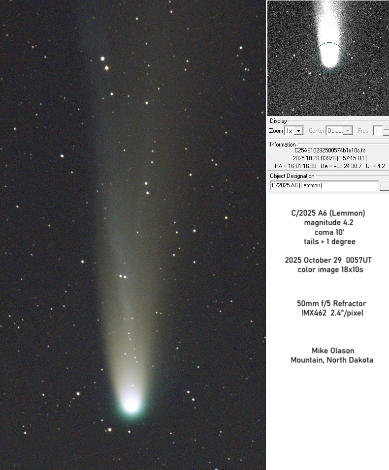 Observation by Mike Olason: C/2025 A6, observed by Mike Olason