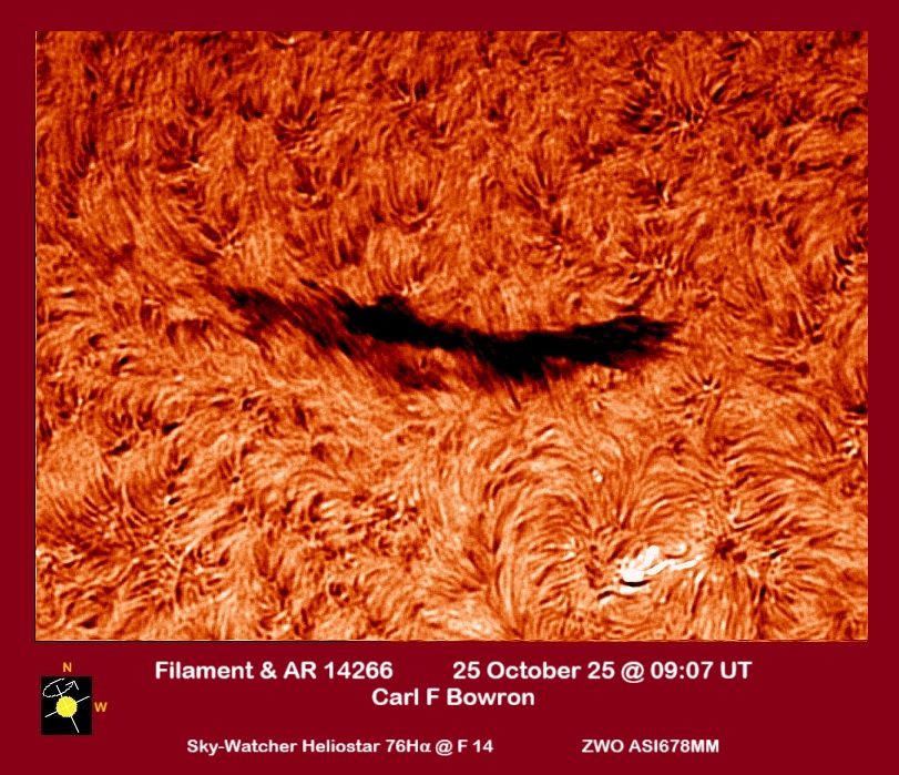 Observation by Carl Bowron: SUN 20251025 0907UT FILA-AR14266 HALPHA ...
