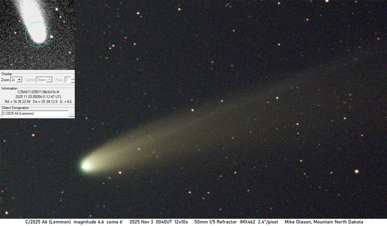 Observation by Mike Olason: C/2025 A6, observed by Mike Olason