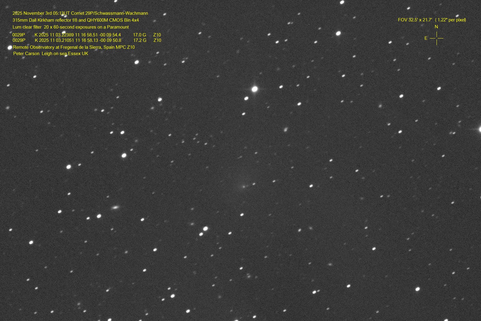 Observation by Peter Carson: 29P Schwassmann-Wachmann, observed by Pe...