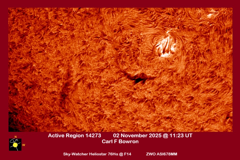 Observation by Carl Bowron: SUN 20251102 1123UT AR14273 HALPHA CFB