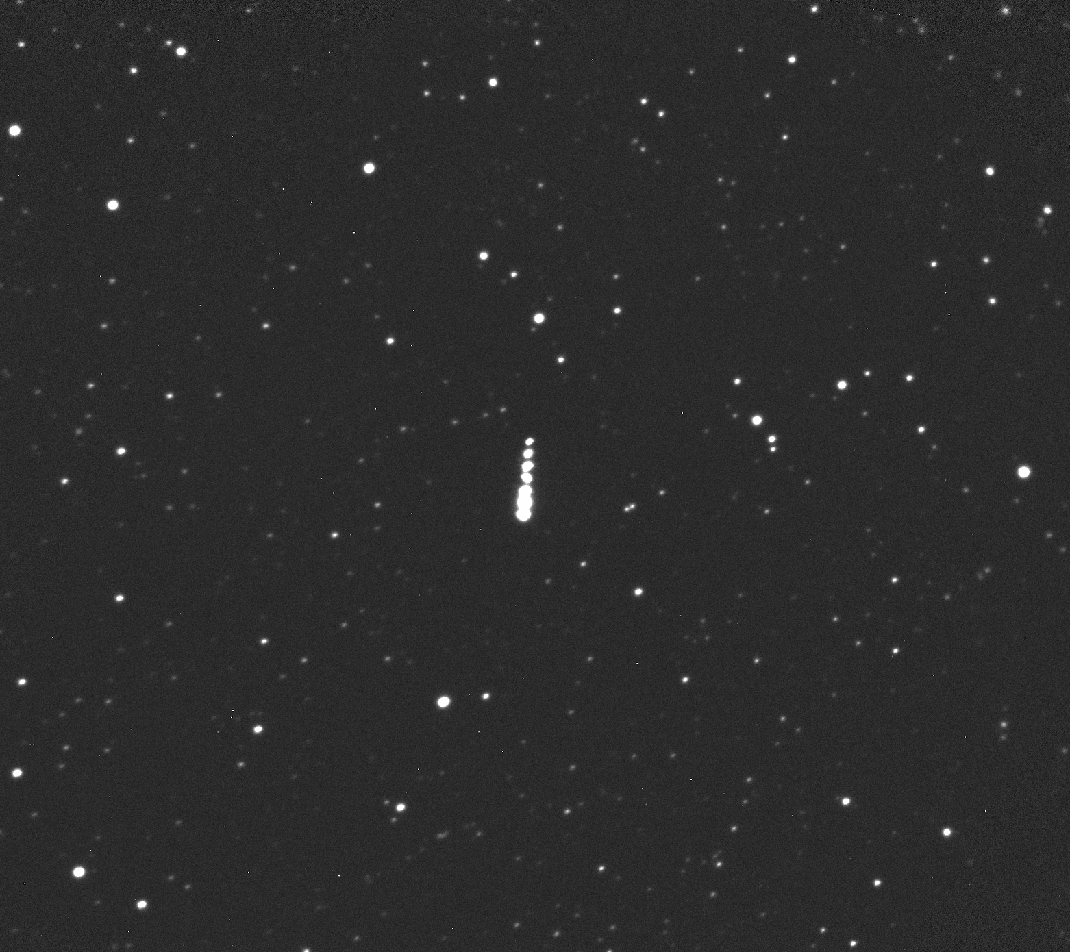 This is the latest in the long-running series of images which show the large proper motion of Barnard's star. The stacked images were taken taken at roughly yearly intervals.