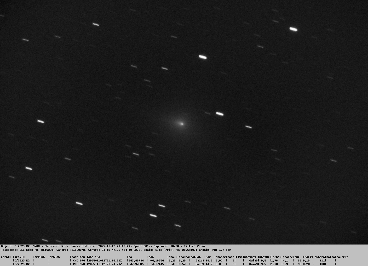 Observation by Nick James: C/2025 R2, observed by Nick James