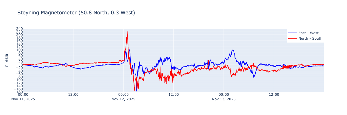 Observation by Nick Quinn: Magnetometer recording of the Auroral St...
