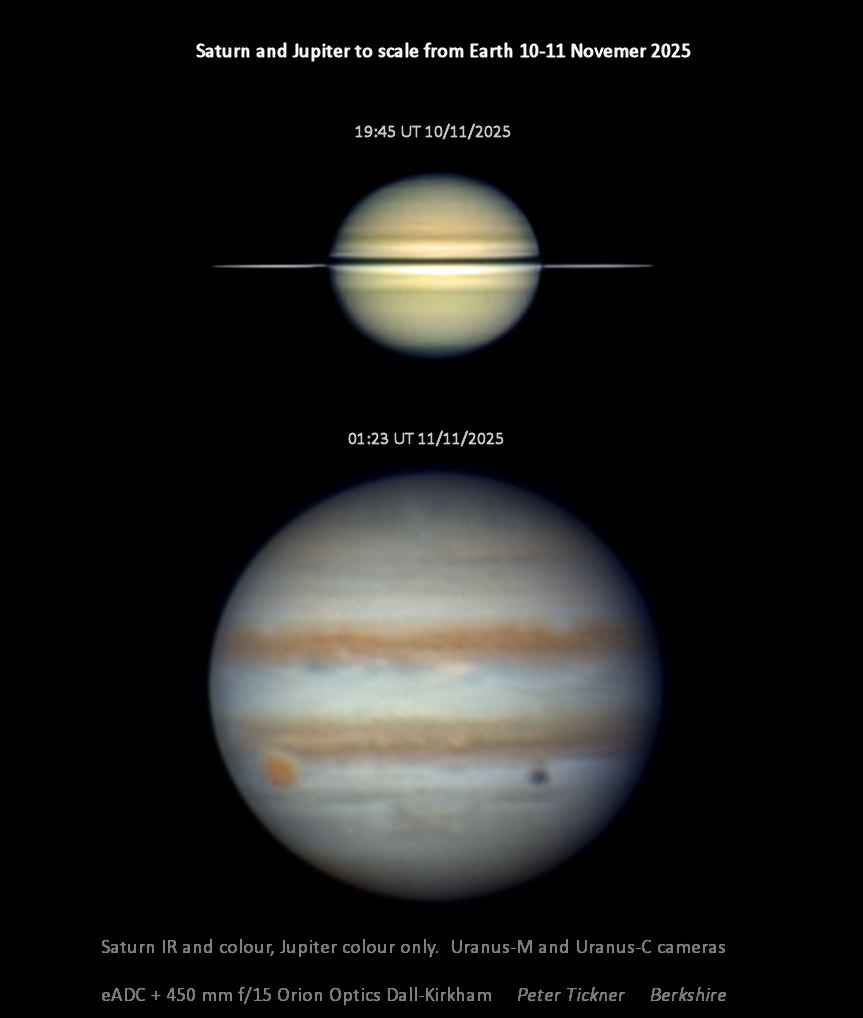 Observation by Peter Tickner: Saturn and Jupiter to scale from Earth 1...