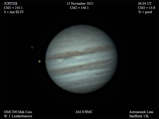 Observation by Bill Leatherbarrow: Jupiter, Io and Callisto, 13 November 20...