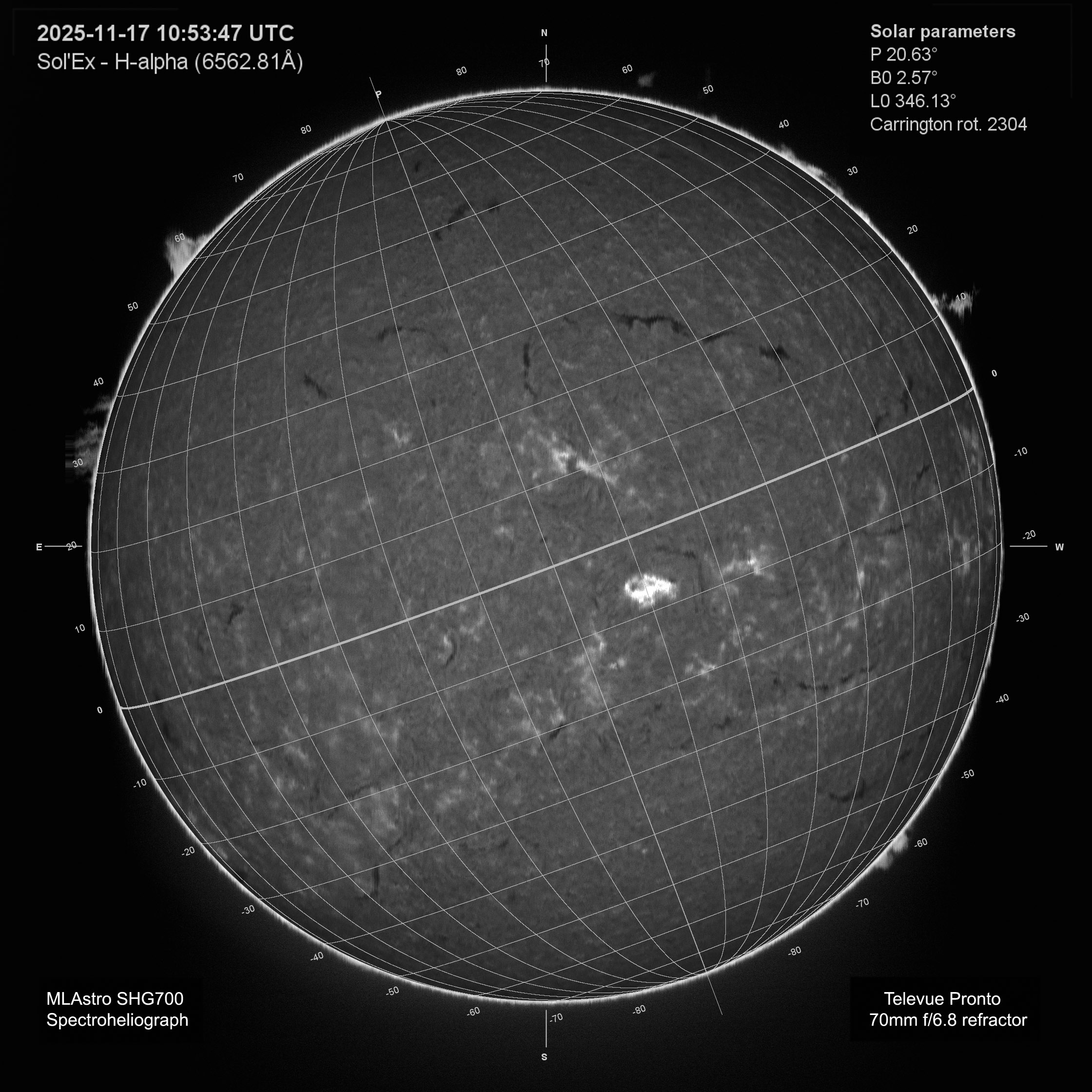 Observation by James Weightman: Spectroheliograph H-alpha Sun