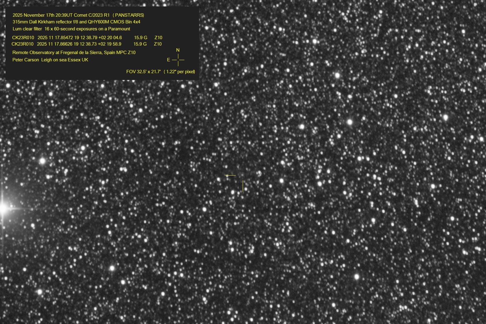 Observation by Peter Carson: C/2023 R1 (PANSTARRS), observed by Peter...