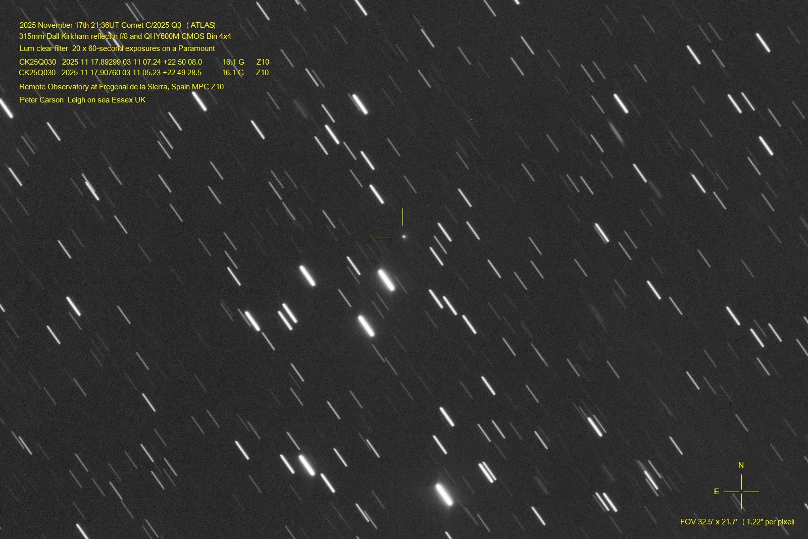 Observation by Peter Carson: C/2025 Q3, observed by Peter Carson