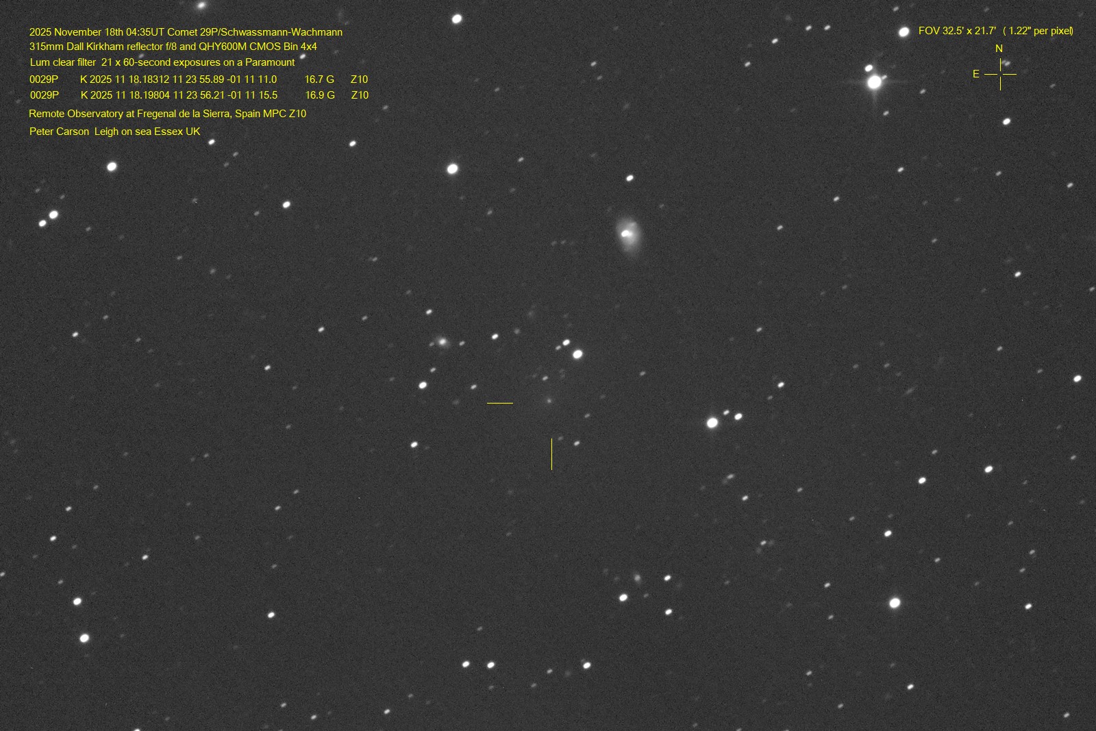 Observation by Peter Carson: 29P Schwassmann-Wachmann, observed by Pe...