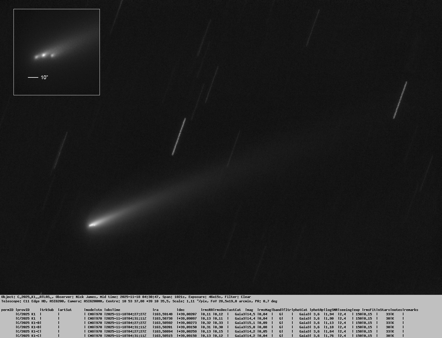 Observation by Nick James: C/2025 K1 (ATLAS) fragments
