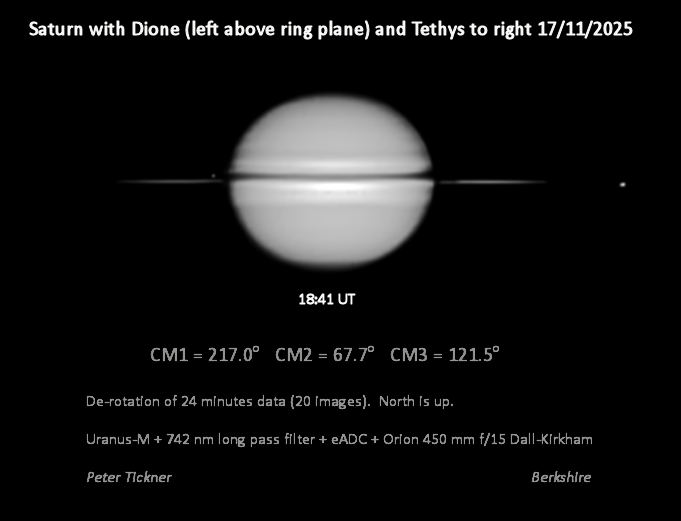 Observation by Peter Tickner: Saturn with Dione and Tethys 17 November
