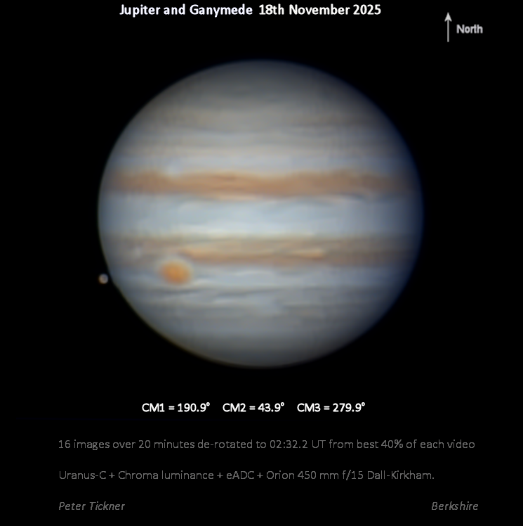 Observation by Peter Tickner: Jupiter, the GRS and Ganymede 18 Novembe...