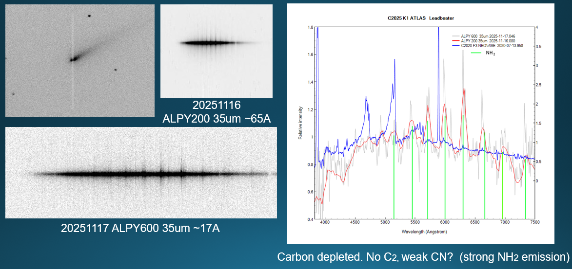 Observation by Robin Leadbeater: Comet 2025 K1 (ATLAS) Spectrum