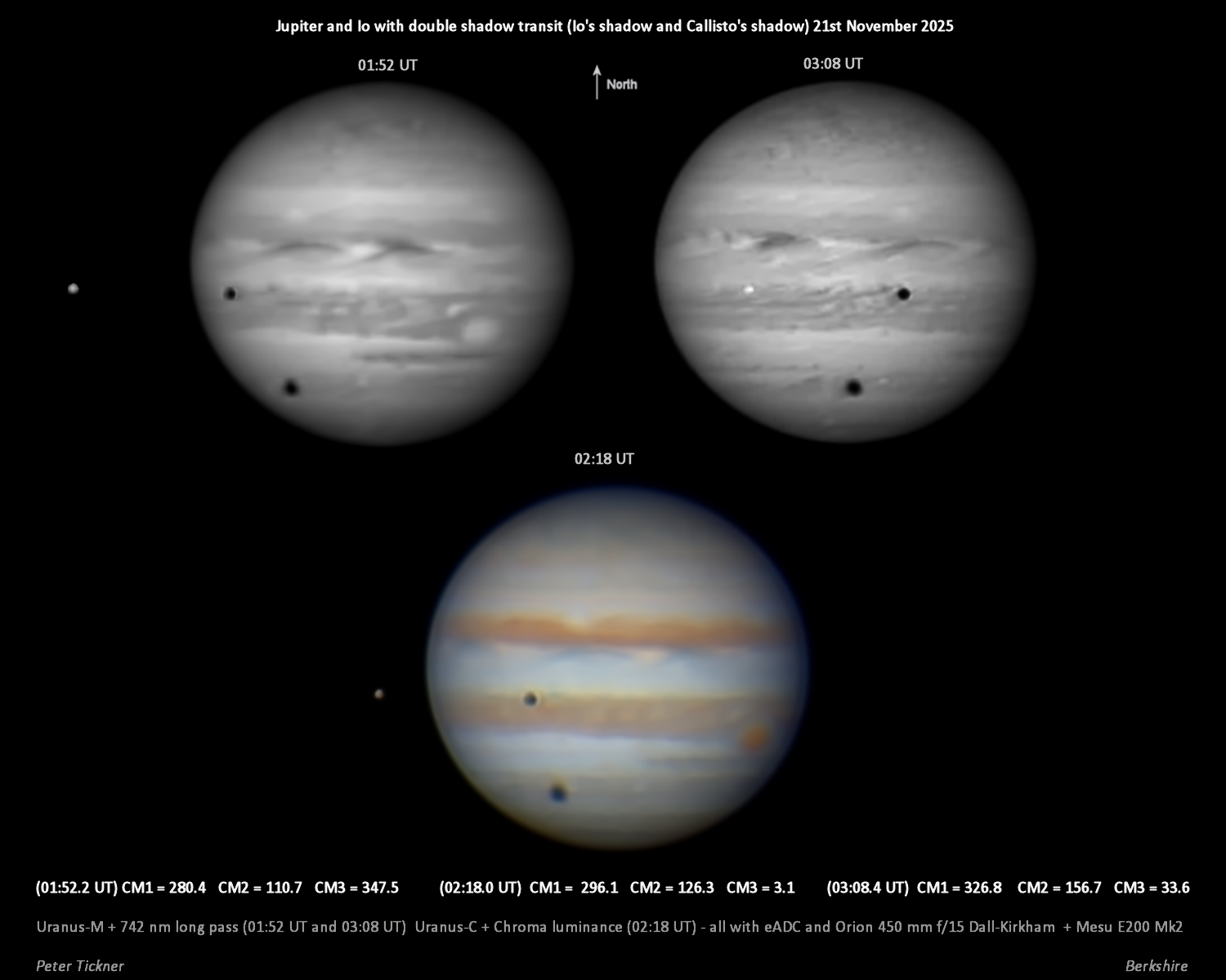 Observation by Peter Tickner: Rare double shadow transit of Jupiter 21...