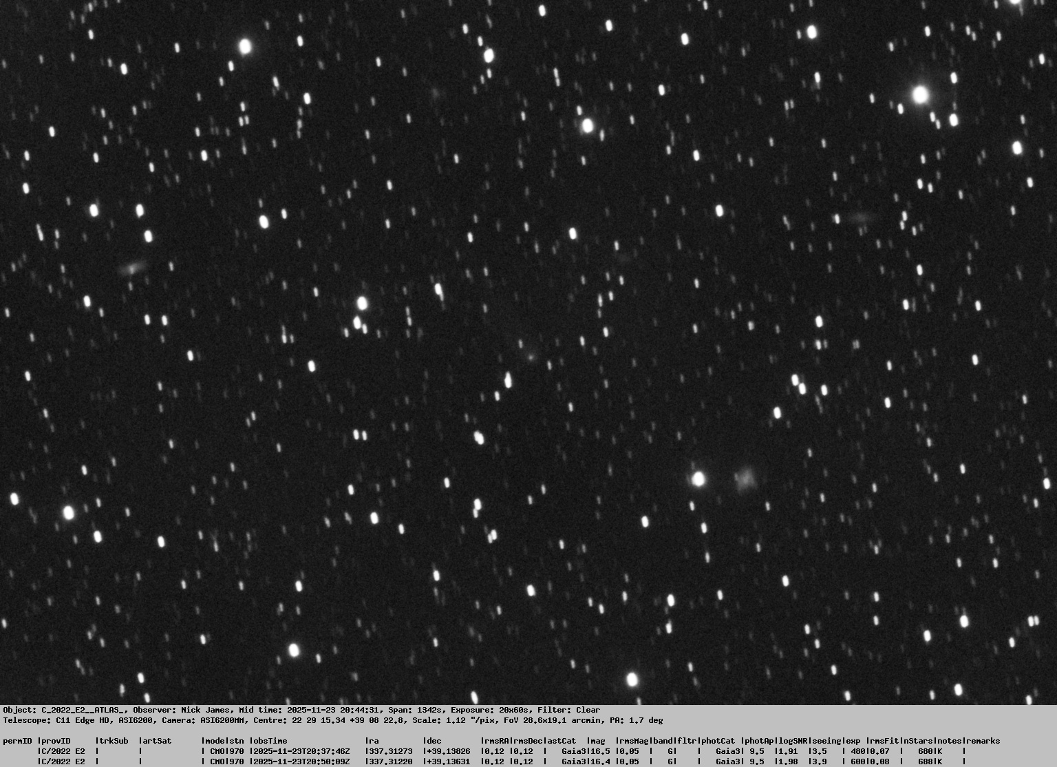 Observation by Nick James: C/2022 E2 (ATLAS), observed by Nick Jame...