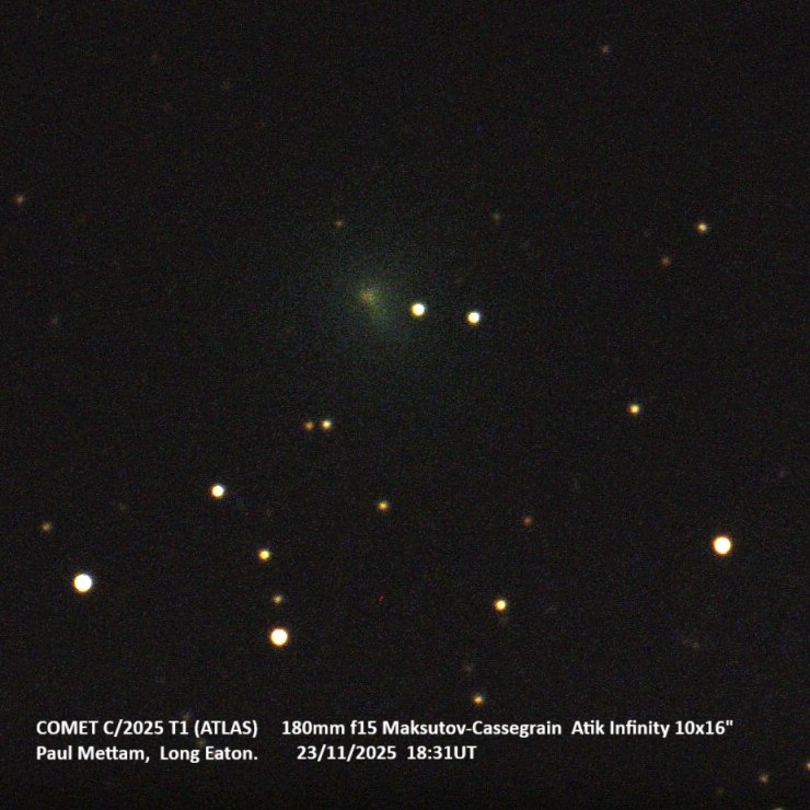 Observation by Paul Mettam: Comet C/2025 T1 (ATLAS)