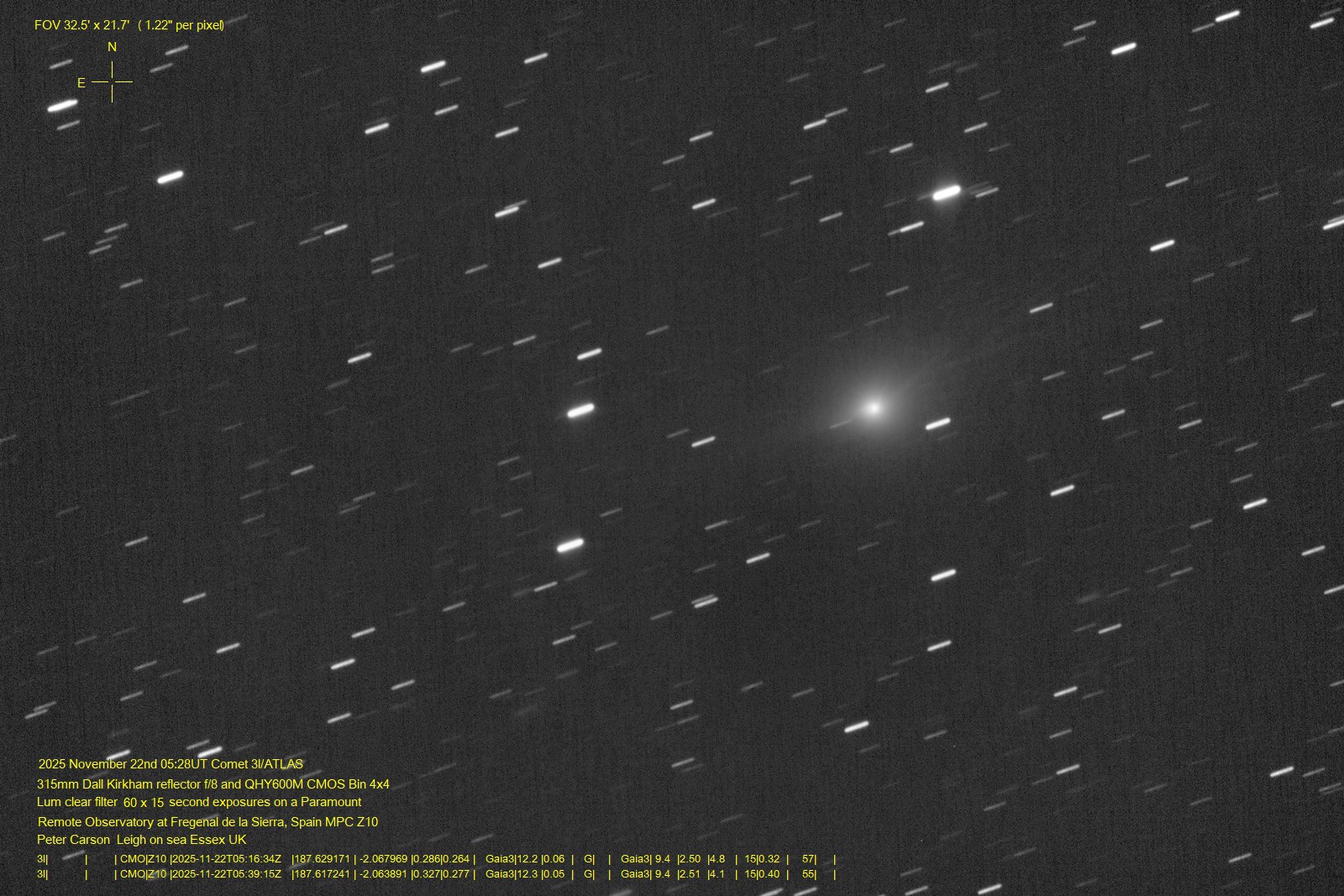 Observation by Peter Carson: Interstellar comet 3I/ATLAS