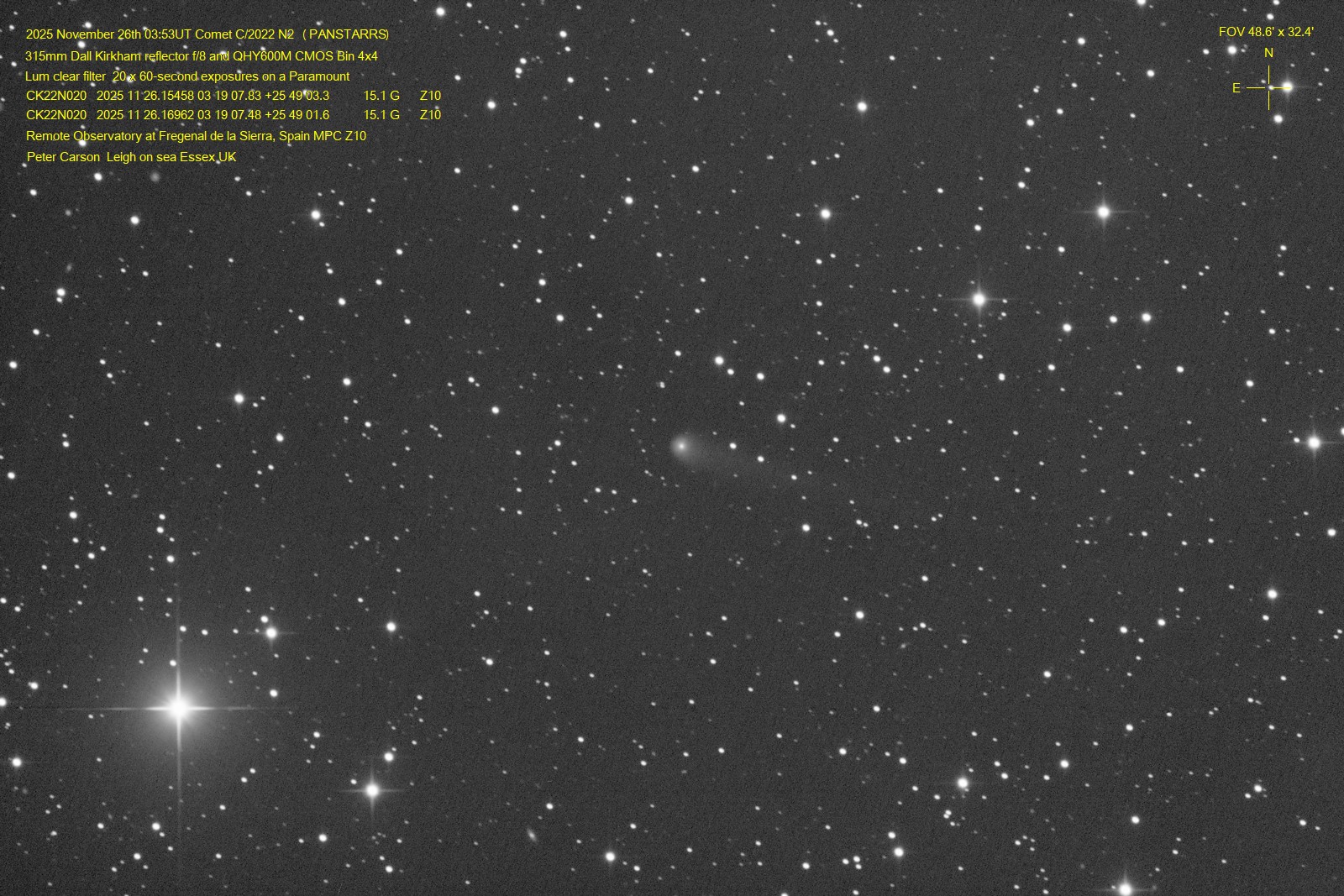 Observation by Peter Carson: C/2022 N2 (PANSTARRS), observed by Peter...