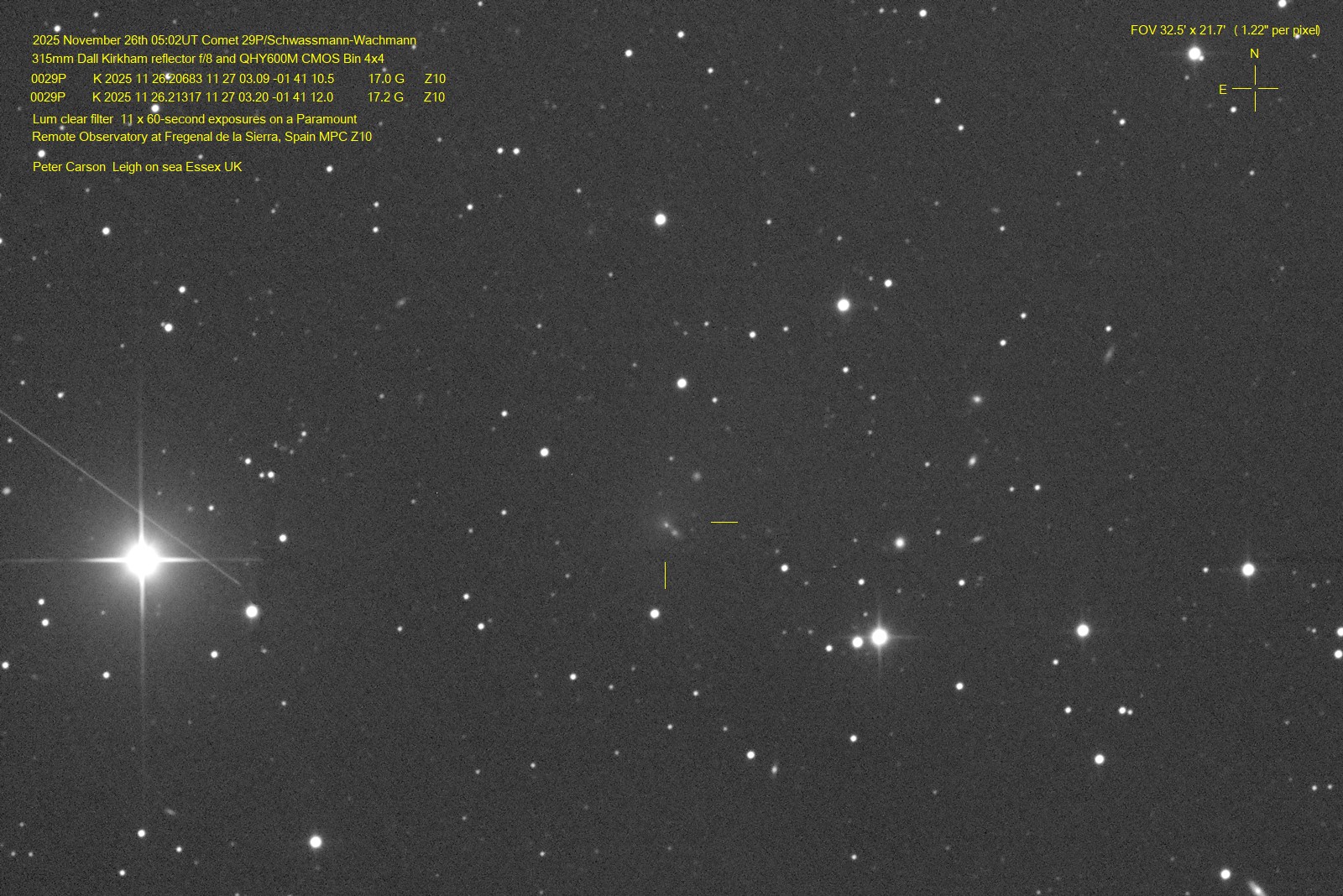 Observation by Peter Carson: 29P Schwassmann-Wachmann, observed by Pe...
