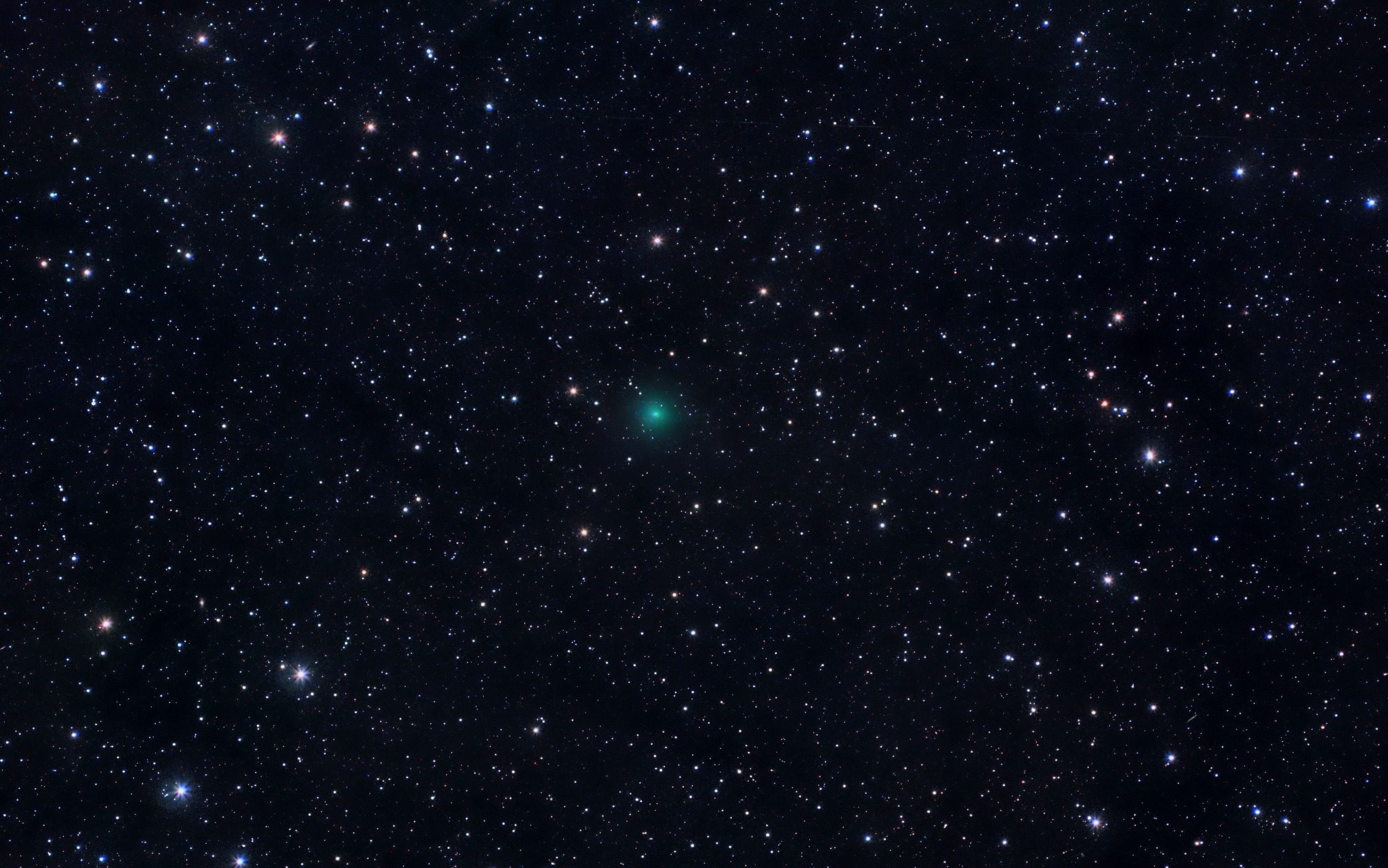 24P/Schaumasse 2025-11-28 1.21 UT LRGB 40/12/12/12min Leica-Apo-Telyt f-180mm/4.0 Asi 294m Michael Jäger, Gerald Rhemann Center (RA, Dec): (150.879, 19.607) Center (RA, hms): 10h 03m 30.880s Center (Dec, dms): +19° 36' 24.764" Size: 4.66 x 2.92 deg Radius: 2.749 deg Pixel scale: 8.19 arcsec/pixel "Orientation", may be incorrect, use at your own risk: Up is 176.9 degrees E of N