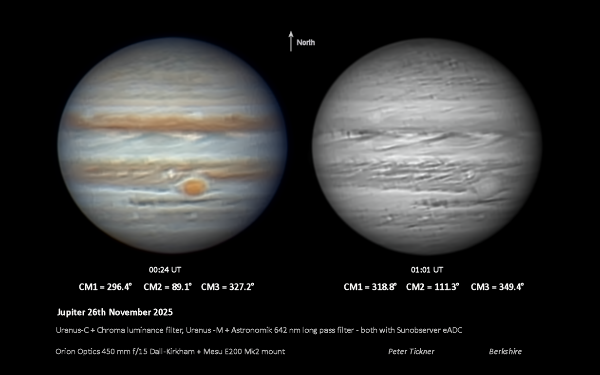 Observation by Peter Tickner: Jupiter IR and colour 26th November