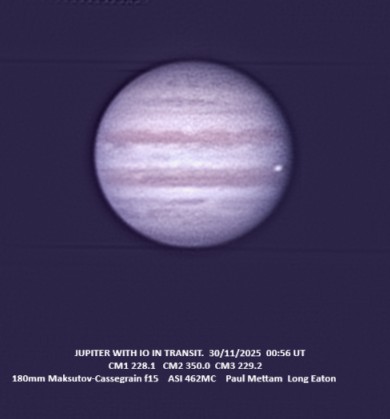 Observation by Paul Mettam: JUPITER WITH IO IN TRANSIT
