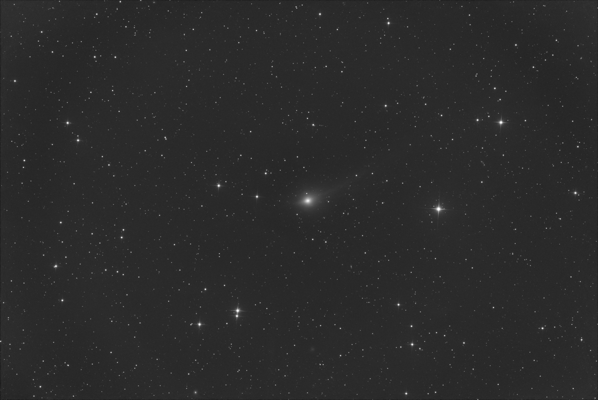 3I/ATLAS, 01.12.2025, 5.12 UT Shot over the brightly lit Breckefeld sky with an 8" / 3.0 Newtonian telescope and Touptek 2600MP blue filter, 900 s. FOV 128' x 85'