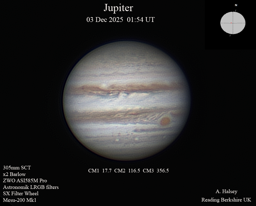 Observation by Alun Halsey: Jupiter 3rd Dec 2025