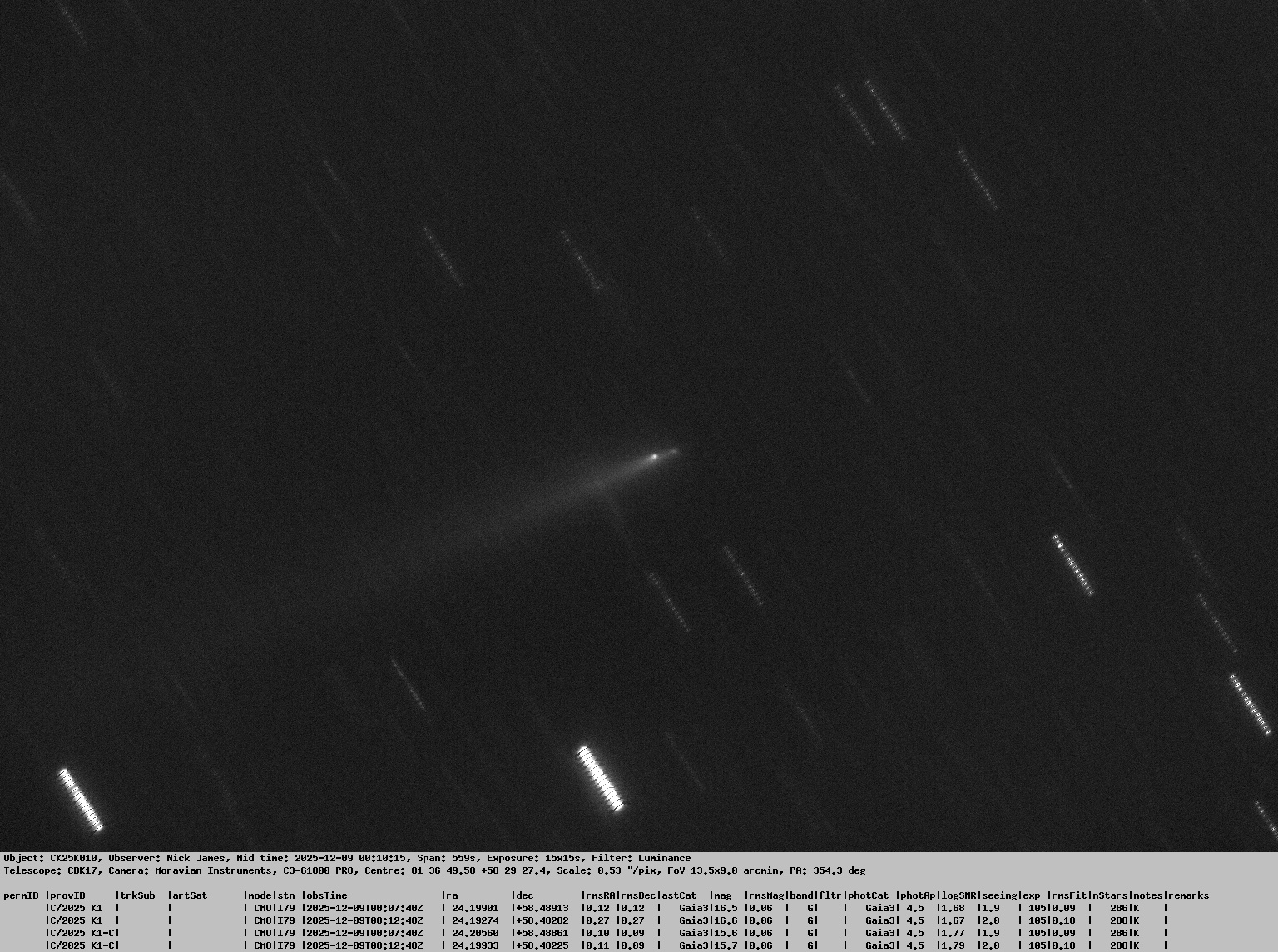 Observation by Nick James: C/2025 K1, observed by Nick James