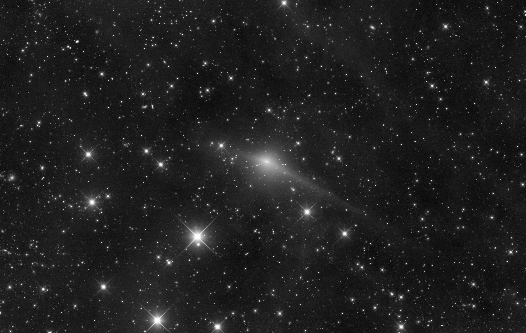 C/2025 R2 SWAN 2025-12-10 19.46 UT 12x70sec 14"/4.2 QHY 600 M. Jäger, G. Rhemann Center (RA, Dec): (6.583, 9.453) Center (RA, hms): 00h 26m 19.867s Center (Dec, dms): +09° 27' 10.713" Size: 61.8 x 39.2 arcmin Radius: 0.610 deg Pixel scale: 1.85 arcsec/pixel "Orientation", may be incorrect, use at your own risk: Up is 2.2 degrees E of N