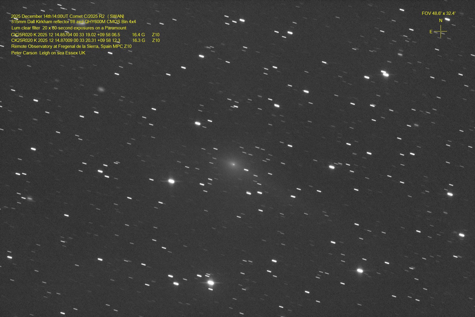 Observation by Peter Carson: C/2025 R2, observed by Peter Carson