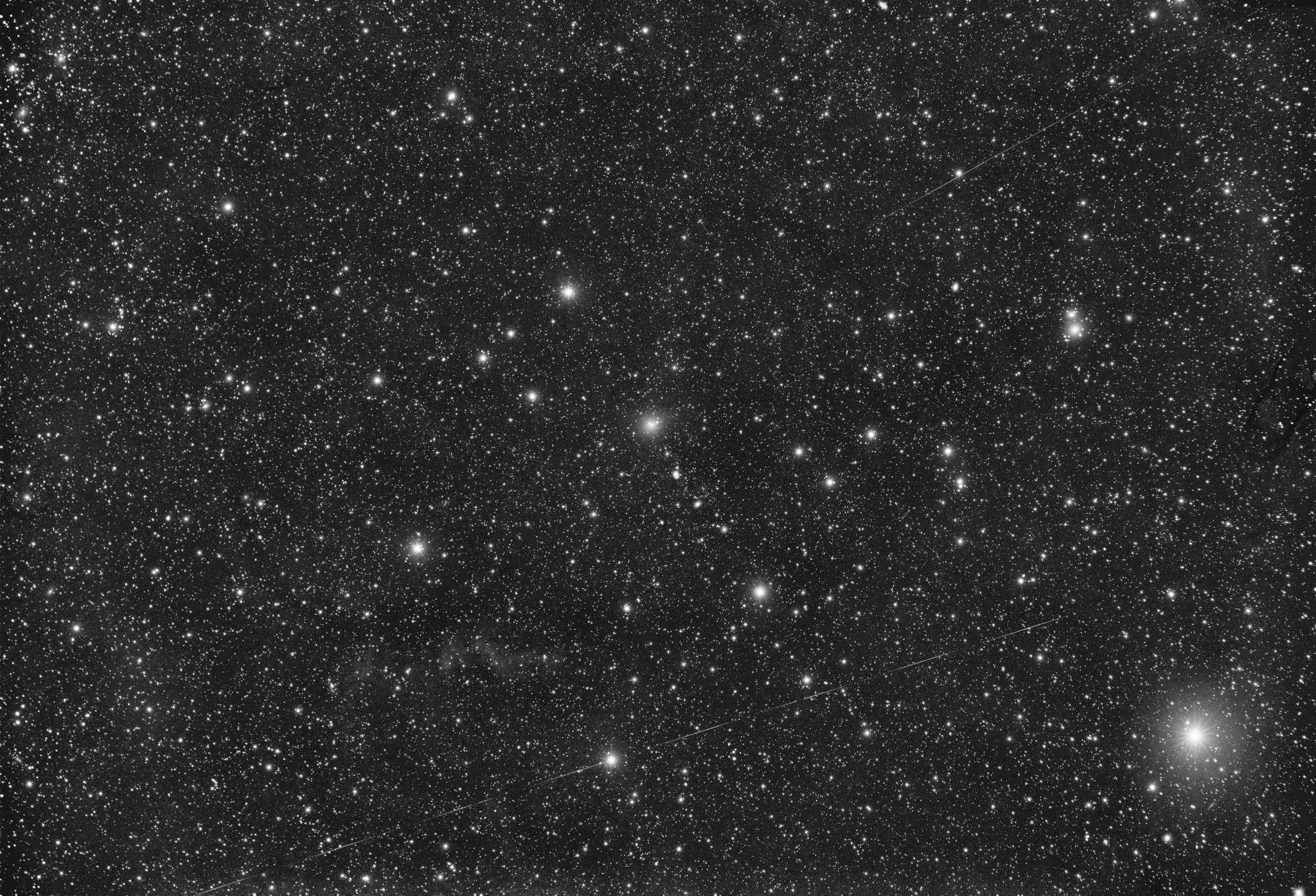 24P/Schaumasse 2025-12-15 00.45 UT 11x130sec and 5x130sec Zeiss-Milvus f-135/2.8 Asi 678m Center (RA, Dec): (172.051, 17.398) Center (RA, hms): 11h 28m 12.135s Center (Dec, dms): +17° 23' 53.620" Size: 8.4 x 5.72 deg Radius: 5.083 deg Pixel scale: 14.8 arcsec/pixel "Orientation", may be incorrect, use at your own risk: Up is 2.1 degrees E of N