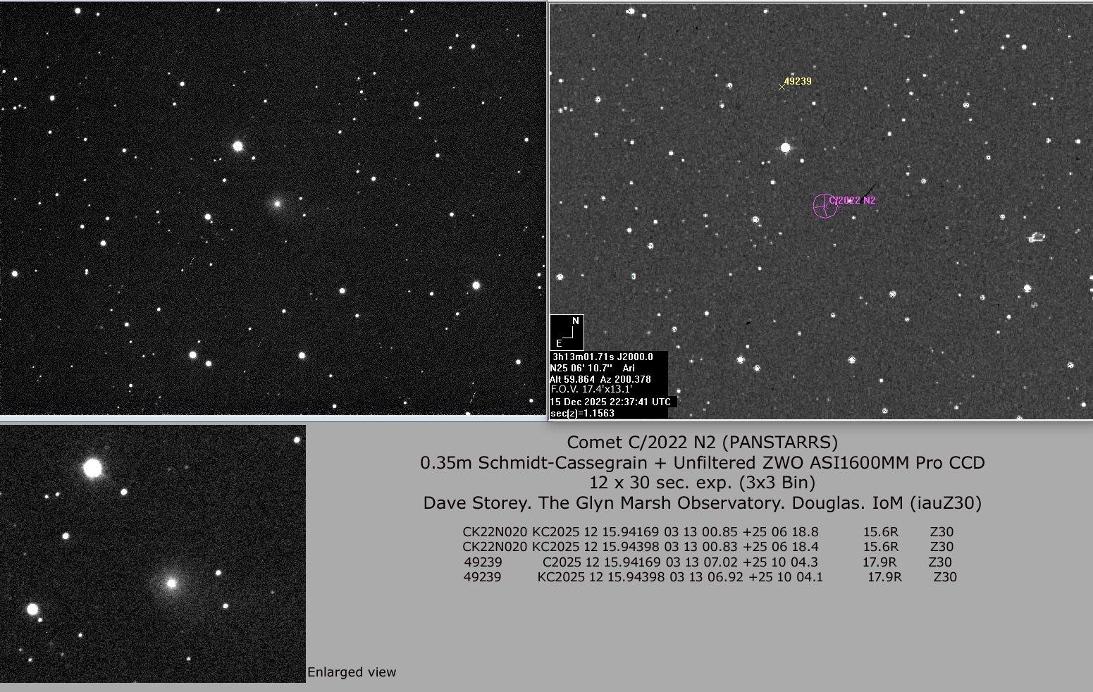 Observation by David Storey: C/2022 N2 (PANSTARRS), observed by David...