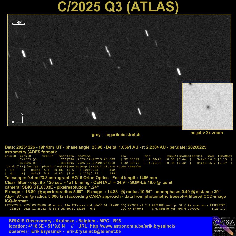 Observation by Erik Bryssinck: C/2025 Q3, observed by Erik Bryssinck