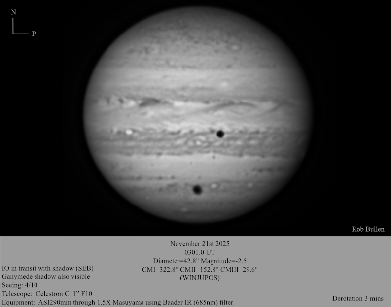 Observation by Rob Bullen: Jupiter 21st November 2025 - Double shad...