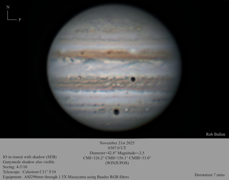 Observation by Rob Bullen: Jupiter 21st November 2025 - Double shad...